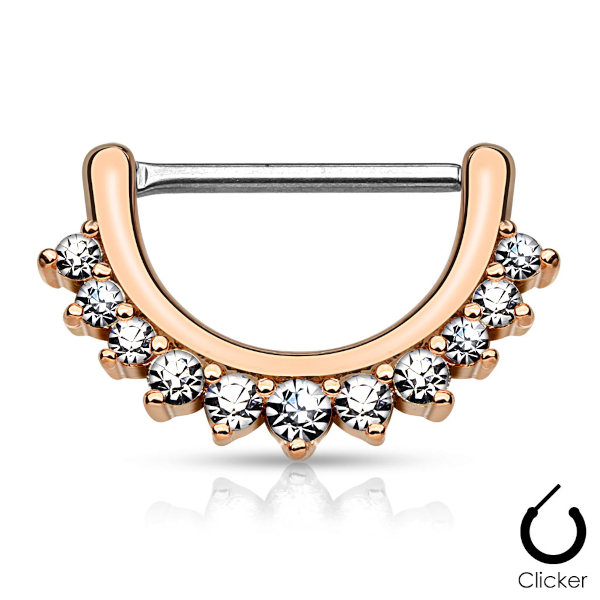 Кликер для груди из хирургической стали 316L латунной декоративной частью украшенной фианитами.