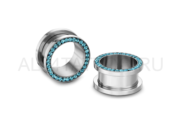 Тоннели из хирургической стали 316l  с голубыми стразами.
