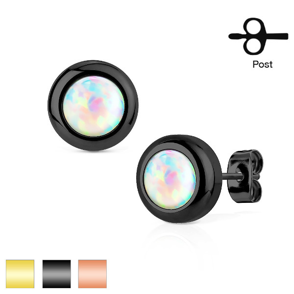 Серьги из анодированной хирургической стали, украшенные белым синтетическим опалом. Размер шарика - 9мм.