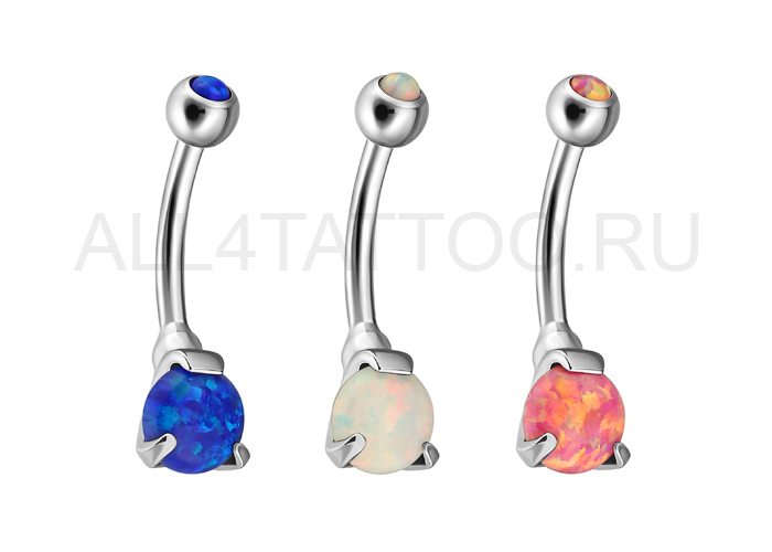 Банан из хирургической стали 316L с усечённым синтетическим опалом в лапках. Диаметр шариков - 4х6 мм.