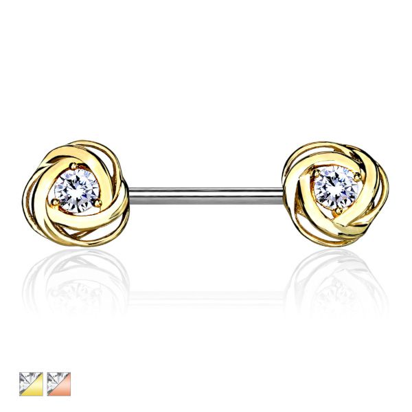 Украшение для груди со штангой из хирургической стали 316L с розами из латуни с золотым покрытием.