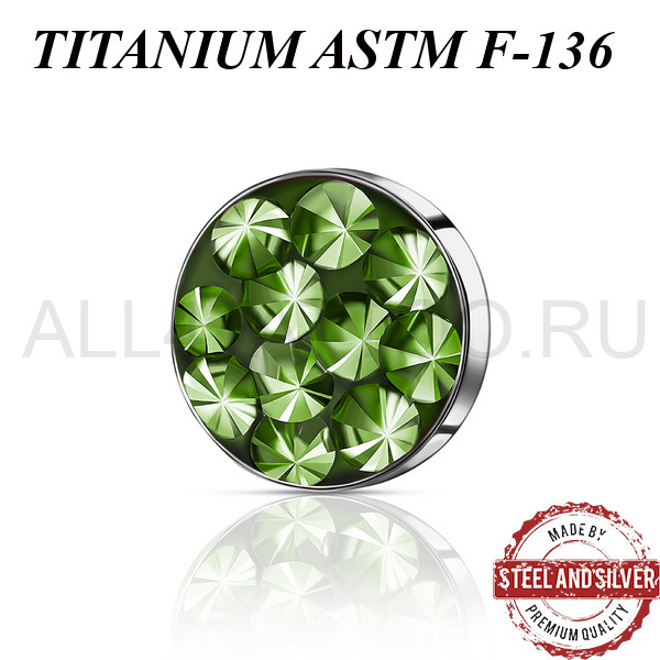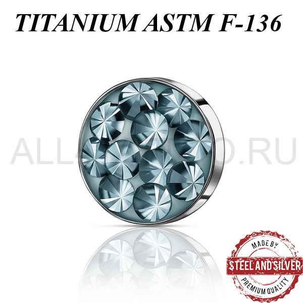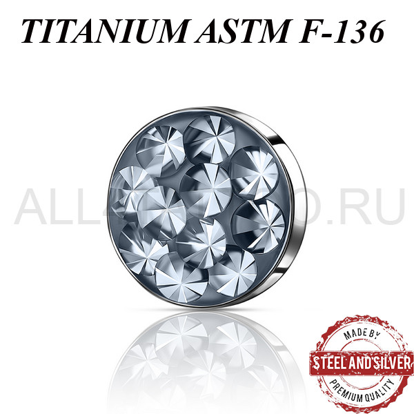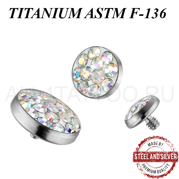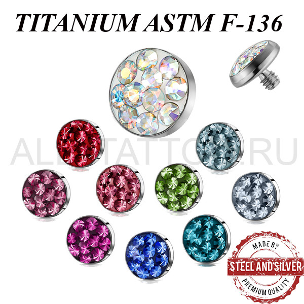 Накрутка из имплантационного титана ASTM F-136. Украшена премиальными кристаллами. Резьба накруток 1,2мм подходят к микродермалам и украшениям с внутренней резьбой толщиной 1,6мм.