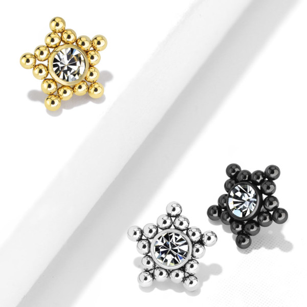 Накрутка из хирургической стали 316L. Диаметр - 6 мм. Подходит для украшений толщиной 1,6мм с внутренней резьбой и микродермалов. Представлены также вариация с чёрным PVD покрытием.