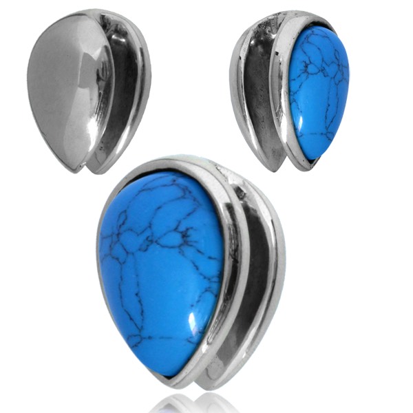 Подвесы каплевидной формы из белой латуни со вставкой из искусственной бирюзы.