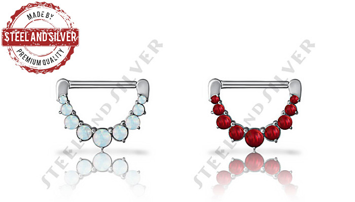 Кликер для груди из хирургической стали 316L с лабораторными опалами.