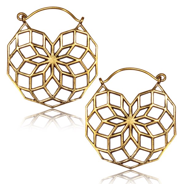 Cерьги для тоннелей из латуни с геометрическим рисунком.