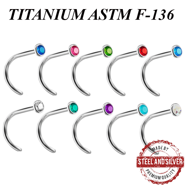Нострил из имплантационного титана ASTM F-136 украшен премиальным кристаллом.