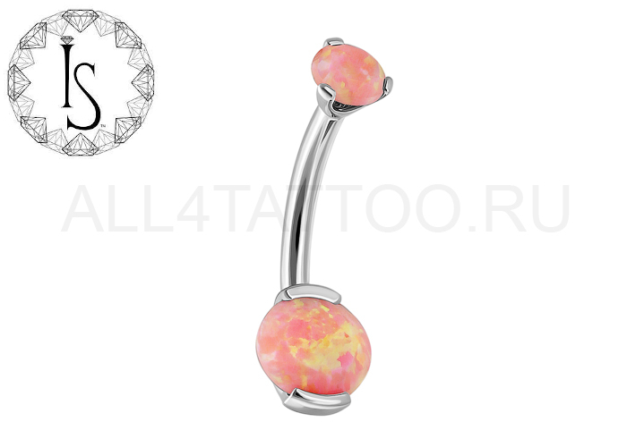 Банан с внутренней резьбой из имплантационного титана 6Al-4V-Eli ASTM: F-136 отполированный в ручную от американской компании Industrial Strength. Украшен граненым лабораторным опалом.