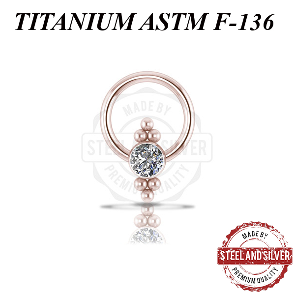Кольцо из имплантационного титана 6Al-4V-Eli ASTM: F-136 с PVD покрытием розового золота. Украшено кластером с кристаллами Swarovski.