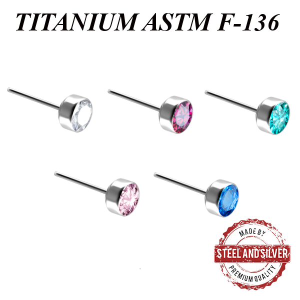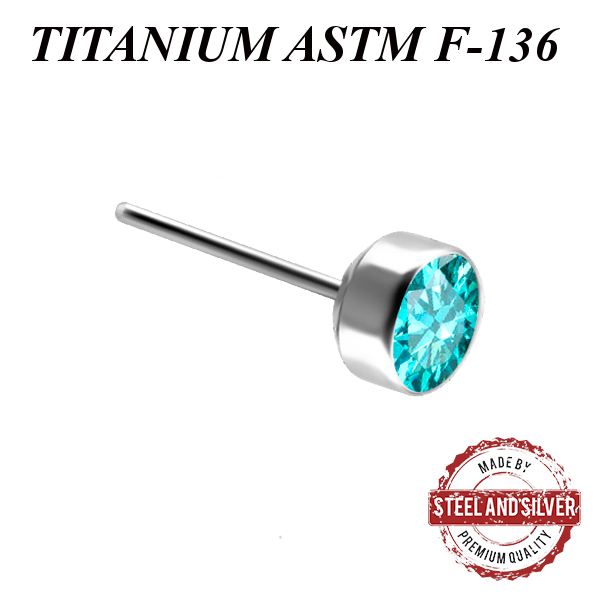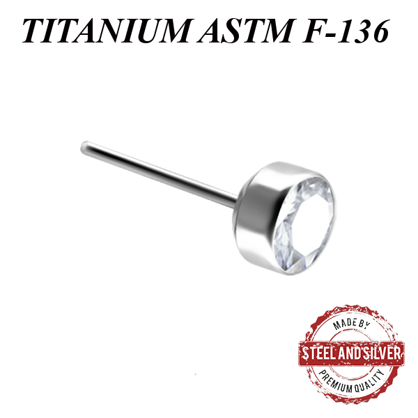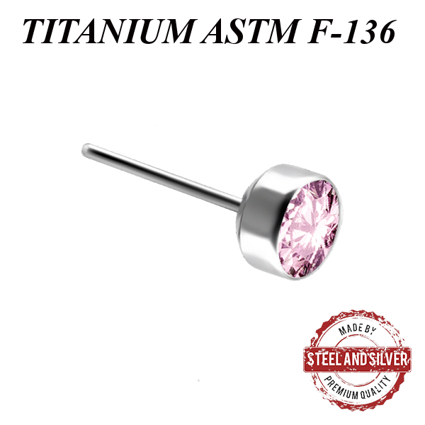 Вставка из имплантационного титана 6Al-4V-Eli ASTM: F-136 для безрезьбовых украшений. Украшена  Premium Zirconia.