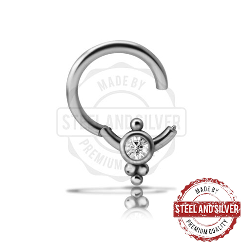 Кликер из хирургической стали 316L украшен кластером с кристаллом Swarovski. Обратная сторона кластера для гладкости покрыта эпоксидной смолой белого цвета, кликер идеален для прокола "Smile".
