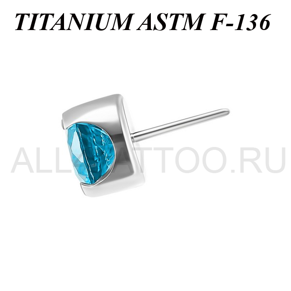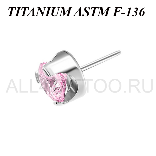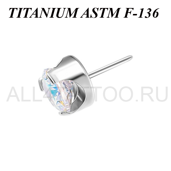 Вставка из имплантационного титана 6Al-4V-Eli ASTM: F-136 для безрезьбовых украшений. Украшена фианитом, закрепленном в трёх лапках. В описании указан диаметр кристалла.