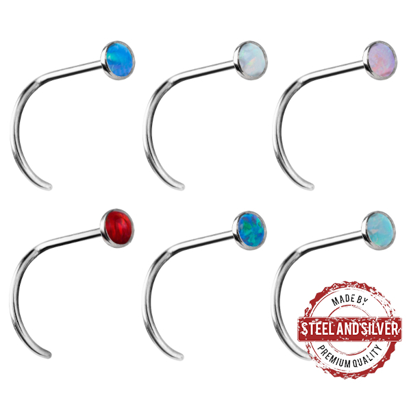 Нострил из хирургической стали 316L с лабораторным опалом.