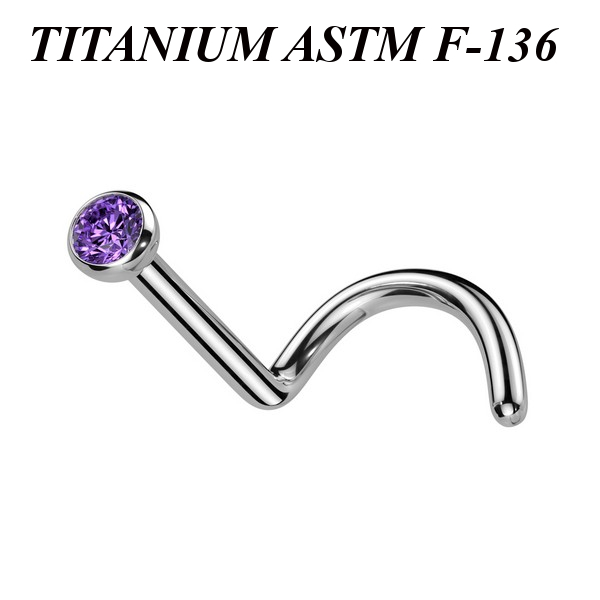 Нострил из имплантационного титана 6Al-4V-Eli ASTM: F-136 украшенный фианитом диаметром 2мм.