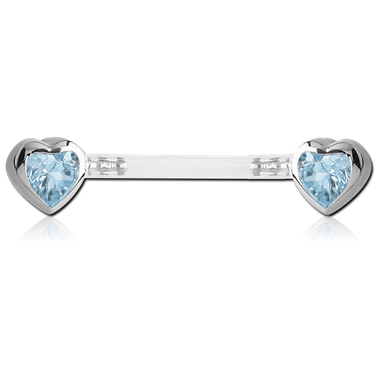 Украшение для груди из PTFE с вставкой из хирургической стали, украшенной кристаллами в форме сердца. При необходимости длину штанги можно укоротить.