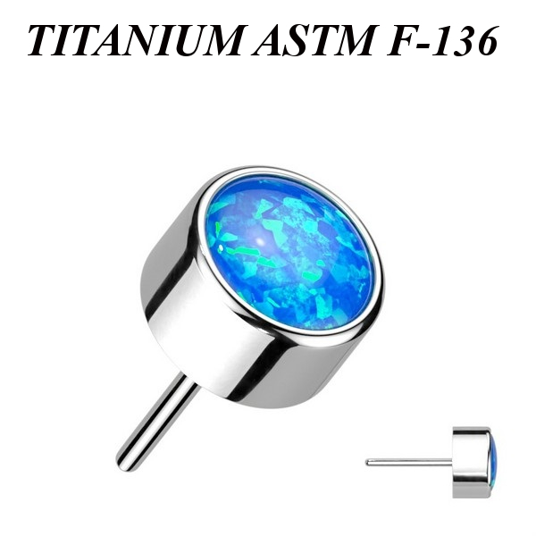 Вставка из имплантационного титана 6Al-4V-Eli ASTM: F-136 для безрезьбовых украшений. Украшена лабораторным опалом.
