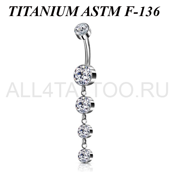Банан из имплантационного титана 6Al-4V-Eli ASTM: F-136 с внутренней резьбой. Украшен прозрачными фианитами.  Длина декоративной части: 28мм.