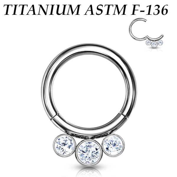 Кликер из имплантационного титана 6Al-4V-Eli ASTM. Украшен тремя фианитами.