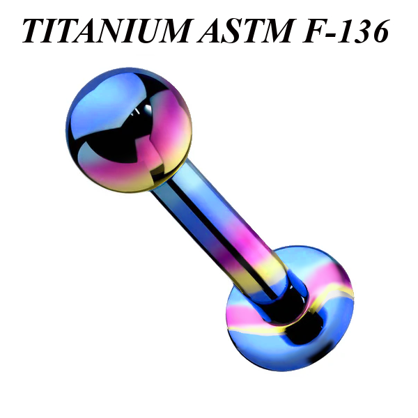 Лабрет из имплантационного титана 6Al-4V-Eli ASTM: F-136 с анодированием. Внутренняя резьба.