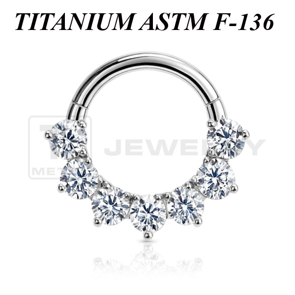 Кликер из имплантационного титана 6Al-4V-Eli ASTM: F-136. Украшен прозрачными фианитами диаметром 2,5мм: 8шт на кликере 10мм и 7шт на кликере 8мм. Представлен в двух вариантах: классический титановый и с золотым PVD покрытием.