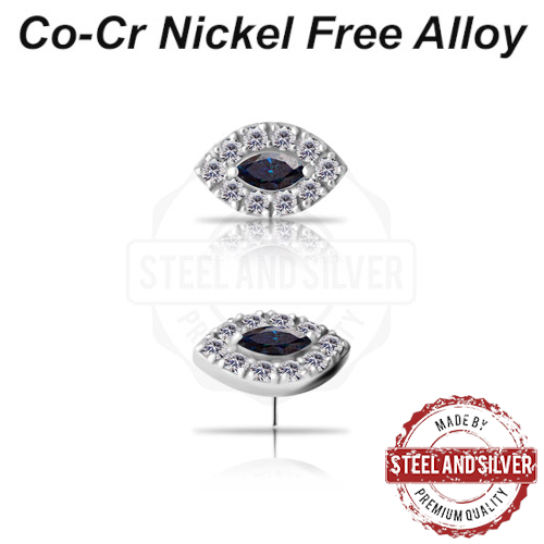 Вставка для безрезьбовых украшений из сплава кобальт-хрома, без содержания никеля. Украшена кристаллами Premium Cubic Zirconia. Размер декоративной части: 5,3х8,3мм.