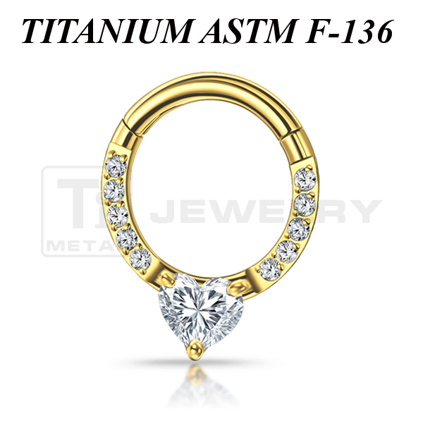 Кликер из имплантационного титана 6Al-4V-Eli ASTM: F-136. Представлен в двух вариантах: классический титановый и с золотым PVD покрытием. Украшен прозрачными фианитами.